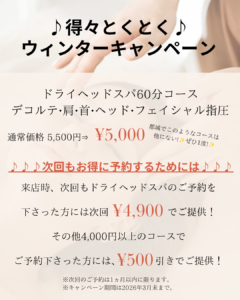 🉐冬CP🉐詳細まで読んで!ドライヘッドスパ60分5000円